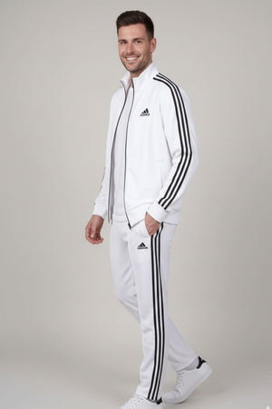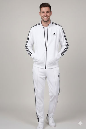 - Full-zip track jacket – stand-up collar, smooth zip closure, and bold double sleeve stripes
